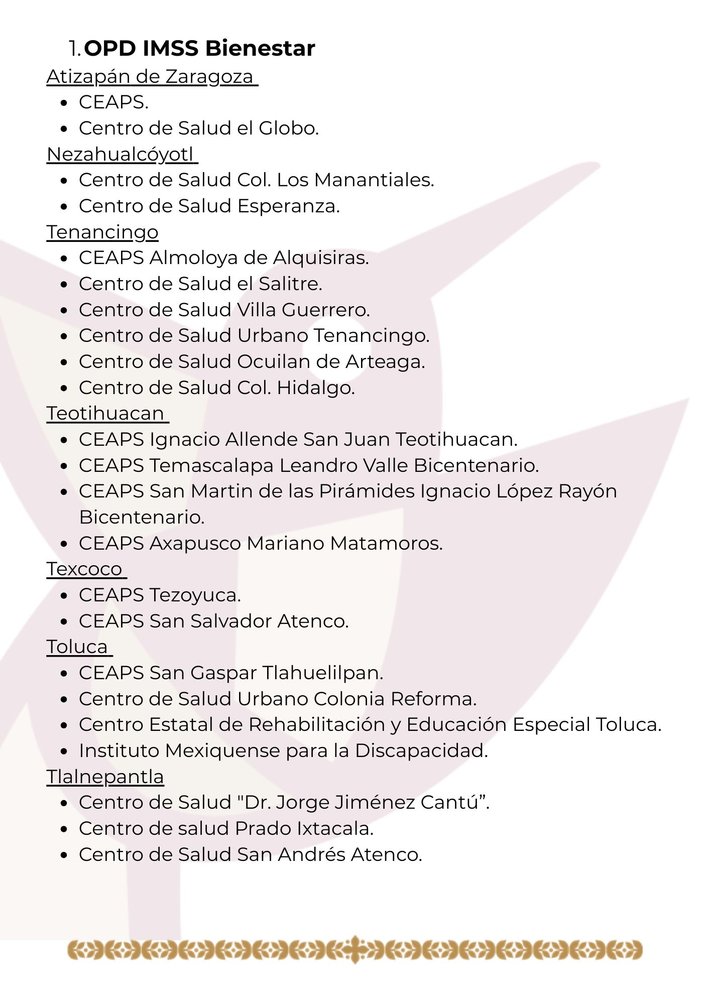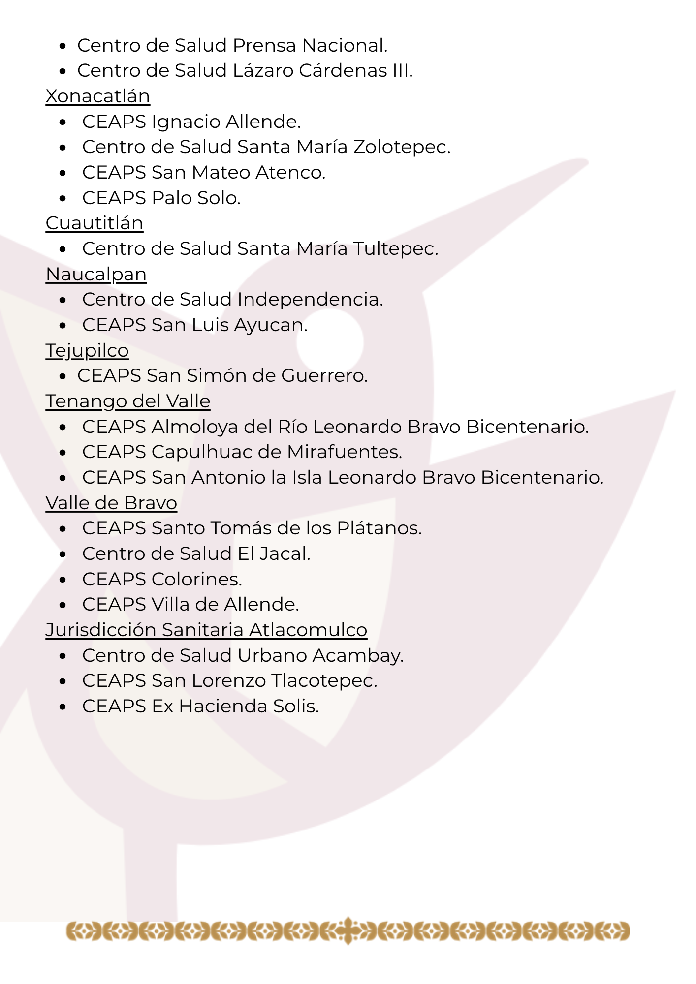 - Centro de Salud "Dr. Jorge Jiménez Cantú”.